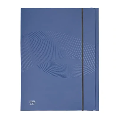 Made from post-consumer recycled matte polypropylene Geometric texture on the surface of the product Blue Angel certification and guarantee of environmental protection Flat elastic closure in grey color Internal size 24 x 33 cm and spine 0-1 cm