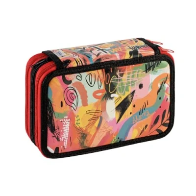 This pencil case is great for storing and organising your school supplies with 3 spacious compartments with zip closure Supplied empty without accessories Practical and durable with art prints Size: 20cm x 13cm x 7.5cm Each compartment is equipped with practical elastic bands to keep your pencil case tidy