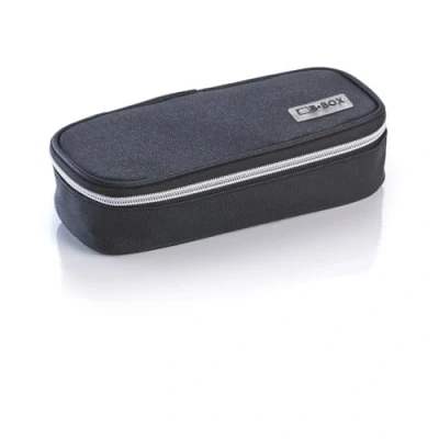 Favorit Pencil Case for School, Oval Black, 24 cm x 9.5 cm, Height 6 with Silver Zipper, Filling Stabilo Products