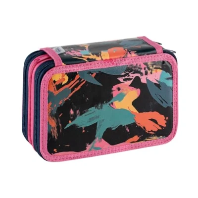 This pencil case is great for storing and organising your school supplies with 3 spacious compartments with zip closure Contains: 18 markers, 12 coloured pencils, 1 pencil, 1 eraser, 1 ruler, 1 sharpener, scissors with rounded tip, 2 pens; Giotto, Fila; great for stationery Practical and durable with MIMETIC prints Size: 20cm x 13cm x 7.5cm Each compartment is equipped with practical elastic bands to keep your pencil case tidy