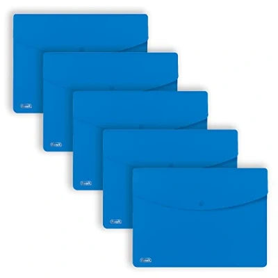 A4 button envelopes made of high thickness opaque polypropylene in classic colours Colour colour snap button closure They are indispensable for protecting and transporting documents or various objects Available in 5 colours: black, green, blue, red and light blue Pack of 5