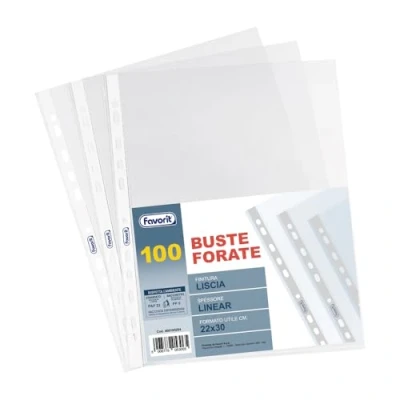 Favorit Transparent Envelopes with Holes, 100 Pieces, Smooth Finish, Internal Format 22 x 30 cm