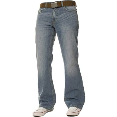 FB Mens Relaxed Fit Bootcut Zip Up Fashion Jean 15/20 Light Blue Faded Denim