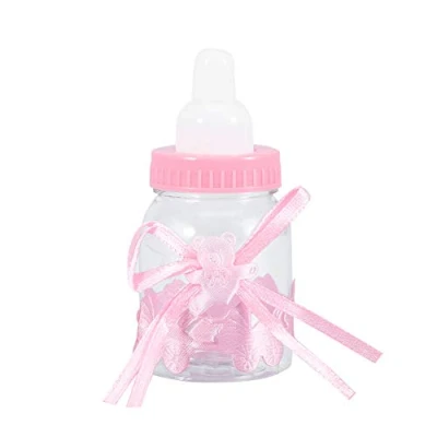 Adopted of food grade plastic material, not easily deform or broken, safe and durable Feeding-bottle together with cute bear bowknot and decorating ribbons, look really cute, sweet and delicate. Perfect for put it on the table as a decoration Mini size bottle design, good for filling small candy, confetti or accessories Smooth bright colors, strong sealing power, high toughness and high quality assurance Can be used to pack candies, chocolates or small gifts in baby shower, Christmas gift, wedding, birthday party