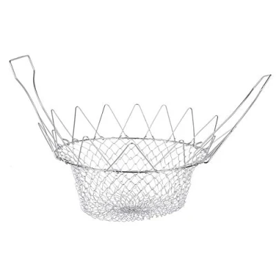 Foldable cooking basket: a clever device that transforms for dozens of daily use. For cooking, steaming, frying, blanching, steaming, rinsing and draining. The best part is that it folds flat so it can be easily stored. This collapsible cooking basket is made from a sturdy and food grade stainless steel construction for safe food contact applications. This collapsible cooking basket opens to a hanging basket that fits perfectly into your pots and pans. Cook pasta, rinse vegetables or frying chips. Simply lift to drain. Turn the basket over to use as a or fold the handles down to use as a free-standing strainer. Cooking has never been safer and easier. The basket only needs to be cleaned with water and detergent and then dried with towels. Size: the cooking basket measures 9 inches in diameter and 3.35 inches in height. Handles are 6.75 inches. It folds flat and is easy to store anywhere., Weight: 0.0881849048 pounds, Manufacturer: Fdit