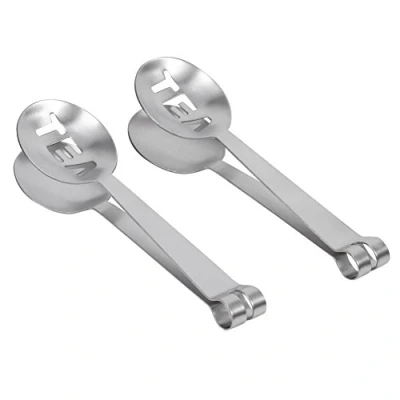 Fdit Set of 2 Tea Tongs Stainless Steel Bag Spoon Squeezer Strainer Holder Handle Sugar Clip Kitchen Ice Cubes Tools