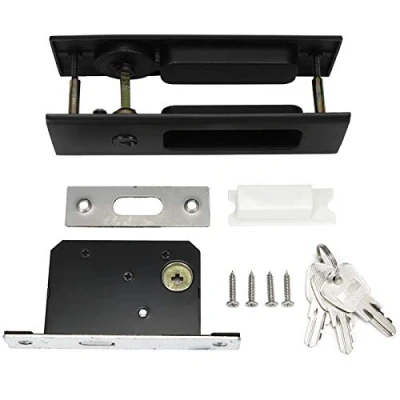 Fdit Sliding Door Lock, Zinc Alloy Barn Mortise Latch Lock Invisible Recessed Handle Latch, Set Bathroom Balcony Cabinet Hardware Fittings (Black)