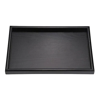 Fdit Wooden Serving Tray Rectangular Fruit Tea Breakfast Plate for Home, Hotel, Cafe, Coffee Canteens, Black Varnish, Wood, 25*18*2cm