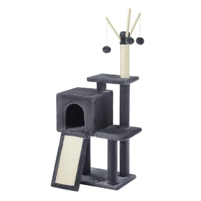 Removable Pompom Sticks: On the top of the small cat tree are 3 pompom sticks—endless fun for cats who love to play! Plus, all the 3 pompom sticks are removable, so you can play with your cats together for more fun 2-in-1 Scratching Ramp: With a scratching board and a ladder in one, this cat scratcher not only lets your cats scratch to their hearts' content without ruining your sofa, but helps kittens, elderly cats, and even cats with mobility issues climb up easily Safe, Stable, Secure: Natural sisal for safety, sturdy particleboard and a reinforced base for stability, and an anti-tip kit for security—this cat play tower offers a safe playground for up to 2 cats (max. 7 kg each) to play Comfy Cat Cave: Thanks to the enclosed space and fluffy plush covered everywhere, this cat cave offers a quiet, cosy place for your cat to get some catnaps, play hide-and-seek, or just have some “me” time Multi-Level Fun: With multiple levels and different areas to play and relax, every cat can climb up and down with ease and find its favourite spot, be it young or old, spry or laid-back