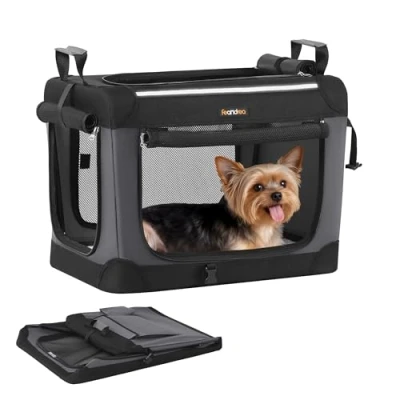 Feandrea Collapsible Dog Crate, Portable Pet Travel Crate for Small Dogs, 50 x 35 cm, Oxford Fabric Carrier with Mesh Doors, Storage Pocket, Ink Black PDC015BH02
