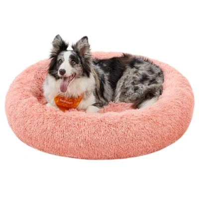 Feandrea Dog Bed, Donut Cat Fluffy Calming Pet Bed with Removable, Washable Cover, Soft Long Plush, 100 cm, Pink PGW042R01