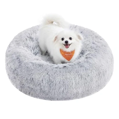 Feandrea Dog Bed, Donut Cat Fluffy Calming Pet Bed with Removable, Washable Cover, Soft Long Plush, 60 cm, Grey