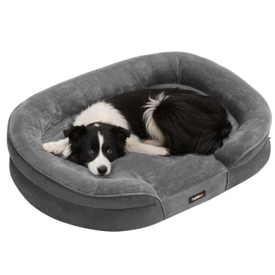 Feandrea Dog Bed, Large Orthopaedic Sofa 91 x 68 18 cm, Egg Crate Foam, Waterproof Liner, Raised Edges, Removable and Washable Cover, Non Slip, Slate Grey PGW282GN01