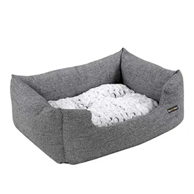 High-quality material - This item utilizes premium polyester fabric as the outer lining which is stable and durable. The inner lining is attached with artificial lamb down fabric which is soft and warm. The base is covered with a plastic drop anti-slip polyester cloth that is both moisture and cold resistant Lovingly designed - The whole bed has been designed with a dog's comfort in mind. The edges are raised to ensure the dog feels safe and to give support to the dogs head. The entrance is lower to allow easy access into the bed Delicate workmanship - The cushion itself is filled with high-quality and high elastic PP cotton, soft and no stimulation.Focusing on style and durability in build and design, this item is stable, durable, soft, fluffy and tear resistant.Your dog/s will enjoy it Wide application - This item is suitable to be used on the sofa, car, pet’s bed and floor etc. It is lightweight and can be moved with ease