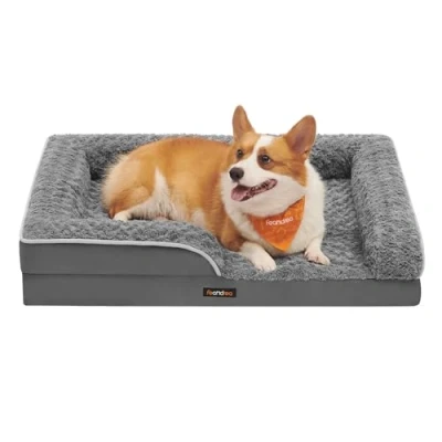 Feandrea Orthopedic Dog Bed for Large Dogs, Memory Foam Sofa Pet Couch with Sides, Removable Washable Cover and Waterproof Liner, 91 x 68 16 cm, Slate Grey PGW252G02