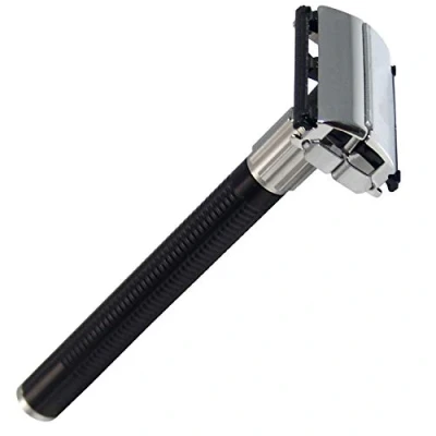 Traditional razor Stainless steel head Comfortable, non-slip handle Case included