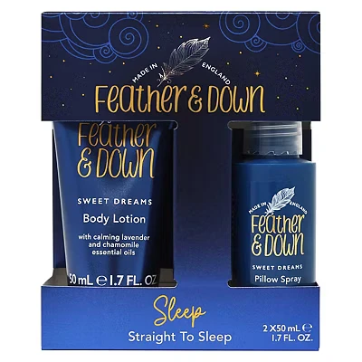 Feather & Down Straight to sleep Gift Set (50ml Pillow Spray 50ml Body Lotion) The perfect duo, infused with lavender chamomile essential oils. Vegan Friendly Cruelty Free.