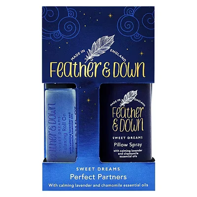 Feather & Down Sweet Dreams Perfect Partners Gift Set (50ml Pillow Spray 10ml Roll on) With calming lavender chamomile essential oils. Cruelty Free.