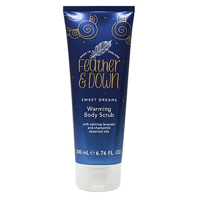 Feather & Down Warming Body Scrub (200ml) With Calming Lavender Chamomile Essential Oils. Exfoliates Gently Warms Tired Muscles. Relieving Tensions from the day.