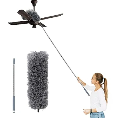 Feather Duster Extendable, Jaragar Microfiber with Extension Pole 30 to 100 inch, Bendable Head Dusters for Cleaning High Ceiling Fan, Interior Roof, Cobweb, Furniture & Cars Gap Dust
