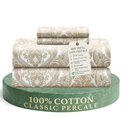 Size Information: 1 Fitted Sheet (60"X80") (16" Pocket),1 Flat Sheet (90"X102") and 2 Standard Pillowcases (20"X30"). 100% Cotton Percale Weave Sheet Set: Percale is known for its crisp hand feel and matte finish. More durable than sateen, percale gets softer with each wash, without pilling, fading or tearing. Cotton percale is breathable and cool to the touch to prevent overheating and sweating at night, so you can sleep more comfortably. With so many trendy colors and patterns to choose from, our Classic Percale bedding can be mixed, matched or layered however you please for a unique look. Easy Care Sheet Set: This ultra-soft sheet set is very easy to maintain. Machine wash in cold water, do not bleach, Tumble dry low, if needed, Wash dark colors separately. We manufacture these bedsheets without using any dyes which keeps the sheets bright toned even after prolonged use. Surprise your friends and family with these beautiful and amazingly silky soft sheets. Our products are backed by incredible customer service to make sure your satisfaction is guaranteed The Perfect Fit: This bed sheet set is designed to fit mattresses up to 16 inches deep. The sheets are made from a soft, durable fabric that is resistant to fading, ripping, and tearing. They are also breathable and comfortable to sleep on. The set comes in a variety of colors to match your décor. It makes a great gift for any occasion. Feel The Cool Comfort In All Seasons: Densely woven from 100% cotton and a rich percale weave, our luxurious bed sheets keep you cool, comfortable, and breathable in all seasons. These premium cooling sheets are well-weighted, soft, and crisp — and rustle when you roll onto the bed.