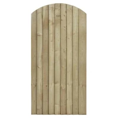 AmazonIdeal for increased privacy and security, Arch top style gate Sawn finish, Clad with overlapping featheredge boards Sturdy 70x21mm framing, Framing double ‘Z’ braced for extra rigidity All timber sustainably sourced, Pressure treated timber Natural timber finish, Can be painted or stained if desired, Manufacturer: Rowlinson Garden Products