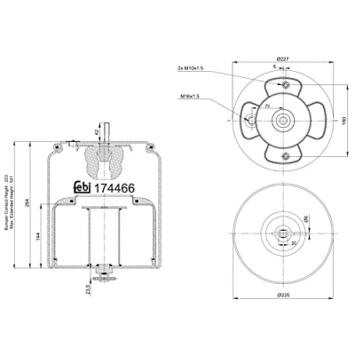 Original Febi Bilstein replacement part - Solutions made in Germany Outer diameter: 225 mm, outer diameter: 227 mm, male thread: M10 x 1.5 mm, male thread: M16 x 1.5 OE numbers (for comparison purposes only): Volvo Trucks: 21961478 Please use the vehicle identification at the top of the page to confirm compatibility with your vehicle. Please note all restrictions