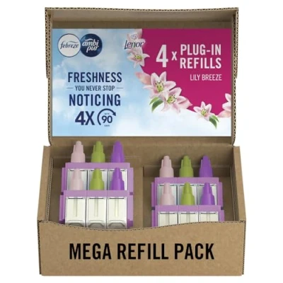 Febreze 3Volution Plug In Air Freshener Refill, 20ML X 4, Odour Eliminator & Bathroom Freshener, Lily Breeze