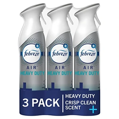 Febreze Air Freshener Spray, Heavy Duty Crisp Clean Scent, Odor Eliminator for Strong Odors, 8.8 Oz (Pack of 3)