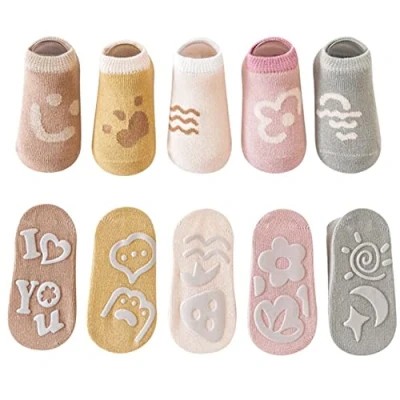 Material: 95% Cotton, 5% Elastane. These baby socks has anti-skid grip which prevent your baby from slipping on hardwood floors or any smooth floors. Made of high quality cotton. These kids socks are soft, lightweight, comfy, absorb sweat, stretchy and durable. 5 colours as the picture shows.