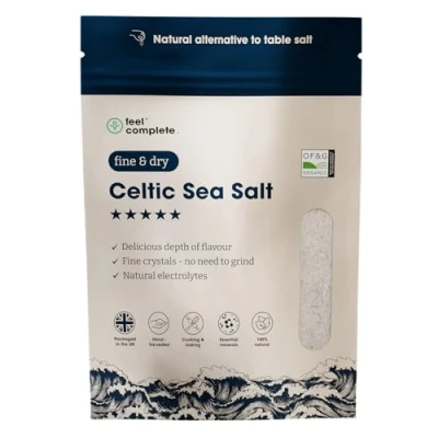 Feel Complete 800g Fine & Dry Celtic Salt No Grinding Needed Organic Approved, 82 Essential Minerals Healthy Sea Alternative to Table (400g)