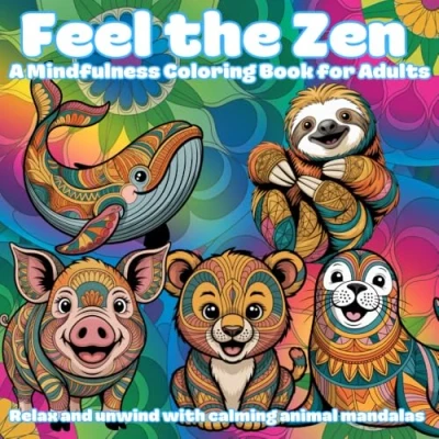 Feel the Zen: A Mindfulness Coloring Book for Adults: Relax and unwind with calming animal mandalas