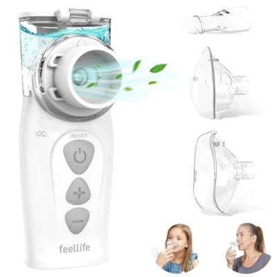 【Nebuliser with AiMesh Technology】 The FELLLIFE nebuliser machine for adults uses AiMesh high-frequency vibration technology to consistently produce ultra-fine particles (≤3±25%µm), with particles reaching the lungs. The high speed generation of ultra-fine particles contributes to increased efficiency and rapid absorption, minimising solution residue. Its core module is made of polymer material, which is authentic, effective and safe. 【3 Adjustable Nebulization Models】The FEELLIFEnebuliser for kids offers three adjustable nebulization rates, allowing settings from 0.15ml/min to 0.90ml/min to meet the needs of adults and kids as well as babies. In microwave mode, the machine adjusts the nebulization rate according to a fixed frequency to improve the different user’s inhalation experience.One device for the whole family. 【Super Silcence】 The FEELLIFE portable nebuliser utlizes advanced noise reduction technology, it operates at less than 25dB, significantly enhancing the user experience, preventing discomfort in infants and children due the noise. This nebulizer Machine is also equally suitable for adults who use it at night or need to use it in a quiet environment. Anytime, anywhere, without affecting others. 【Nebuliser with Type-C Rechargeable 】Equipped with an mouthpiece, children's mask, and adult's mask, suitable for users of all ages. The portable nebulizer machine making it easy to carry and can be effortlessly stored in any handbag or pocket. With a built-in rechargeable battery and USB cable, it ensures convenient use both at home, in the office and while traveling. Smart reminder indicator light that allows you to monitor your nebuliser’s power at any time. 【Self-Clean Function】Portable nebuliser for adults Built-in removable Liquid cup for easier cleaning. This feature simplifies maintenance, ensuring cleanliness and hygiene between uses. Spend less time on upkeep and more on respiratory health. 【FEELLIFE Service】FEELLIFE is a professional nebuliser machine manufacturer. Our nebuliser have served millions of families across more than 40 countries and regions worldwide. Over the years we have helped people with breathing difficulties, singers, teachers, voice actors and even pets. All nebulizers come with a 3-year warranty, so feel free to contact us and any problems can be solved within 24 hours.
