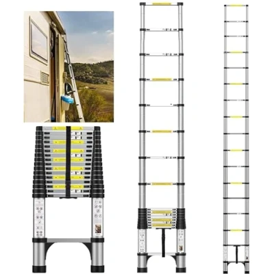FEETE 16.5FT Telescoping Ladder, Aluminum Lightweight Extension Ladder with Non Slip Feet, Portable Attic Heavy Duty RV Collapsible for RV, Household, Outdoor Working, 330lbs Capacity