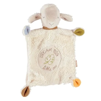 Fehn Cuddly Blanket Sheep Dream Big Playmate & Toy Comforter Made of Cotton from Organic Cultivation with Individually Embroidered Slogan for Babies and Toddlers