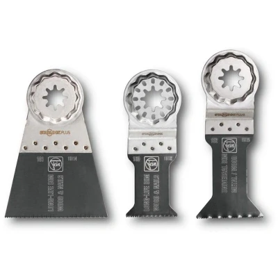 General description The FEIN E-Cut Combo SLP set includes three high-quality saw blades designed for precision cutting in various materials. These blades are ideal for both professional and DIY applications, ensuring clean and efficient cuts. Technical specifications Number of blades: 3 Blade type: E-Cut Material compatibility: Wood, plastic, and non-ferrous metals Length: 100 mm Width: 32 mm Compatibility and accessories Compatible with FEIN MultiMaster and other oscillating tools Usage These saw blades are perfect for a variety of cutting tasks, including: Flush cuts in wood and plastic Cutting through drywall Trimming and shaping non-ferrous metals