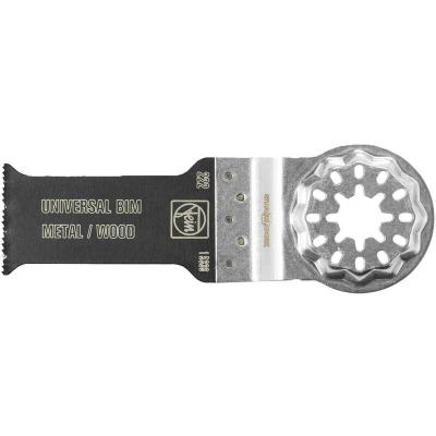 General description The Fein Starlock Multi Tool E-Cut BIM Universal Plunge Blade is designed for professional use, featuring a high-quality German engineering standard. The innovative Starlock blade mounting system allows for quick accessory changes in under three seconds, ensuring maximum efficiency. With a unique 'cake-tin' pattern, this blade guarantees 100% power transfer, enhancing performance, stability, and precision across various applications. Technical specifications Application: Wood Weight: 0.47 kg Outer dimensions: 197 mm x 94 mm x 25 mm Shank Type: Starlock Blade dimensions: 28 mm x 55 mm Compatibility and accessories Compatible with Bosch Starlock and Makita Starlock machines Works with all other NON-Starlock multi tools on the standard OIS system Fits most OMTs including Bosch GOP, Bosch PMF, FEIN MultiMaster, FEIN MultiTalent, Makita, Hitachi, Metabo, Milwaukee, AEG, Einhell, Ryobi, Skil, Dremel, and DeWalt (with adapter provided by DeWalt) Usage Suitable for cutting