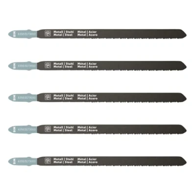 DECOUPING SAW BLADE -Material: BiM (BiMetal),Width: 8mm,Length: 130mm,Quality: BIM,TPI: 16 - 25,VE (packing unit): 5 St APPLICATION - Suitable for use in the following materials: Aluminium tubes and profiles, fiber reinforced plastics, CFRP, GFRP, epoxy, stainless steel, INOX, non-ferrous metals, thin open profiles, thin closed profiles, thin steel pipes, sandwich material. FEATURES -Impresses with straight cuts and extra-long blade COMPATIBILITY - Suitable for jigsaw F-IRON Jig 26 AS QUALITY - FEIN offers a wide range of high-quality power tools: 100% precision, 100% safety.