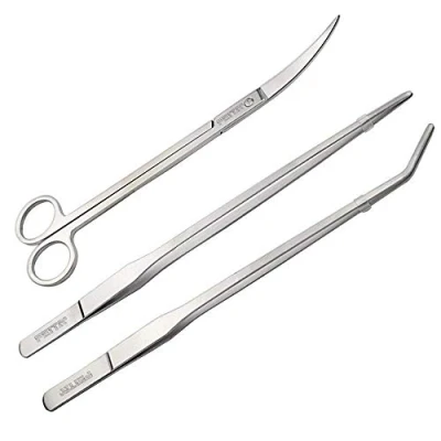 ✔ Aquarium tweezers kit includes Curved Tweezer, Straight Tweezer, and Curved Scissor. Scissors Length: 25cm / 9.85inch; Tweezers Length: 27cm / 10.5inch. Gets in hard-to-reach places and mows down aquarium foreground plants. With aesthetic design and streamlined. ✔ Forged Stainless steel material with excellent flexibility and will never get rusted. Suitable for planting small or thin water plant. Aquarium long tweezers is especially for pruning small water plants. It won't hurt the plant's cross-section, effectively reducing the plants that damages because of the false pruning. ✔ Aquarium tweezers set designed according to the human engineering principle, provides an easy and convenient operation. It also serves as the best utensil for those expertise water plants cultivators in the caring of young aquarium plants.Suitable for planting small or thin water plants. ✔ Serves as the best utensil for those expertise water plants cultivators in the caring of young aquarium plants. Best tools to trim and neatly groom aquarium plants. Great for all types of aquarium plants,substrate,gravel,and other decorations. ✔ Worry-free after-sale service, if you are not satisfied, we will give you a full refund or a replacement. Feita tweezers set have perfect stocking stuffer.