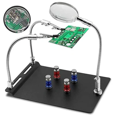 FEITA Helping Third Hands Soldering Magnifier Tool Flexible Arms Clamp Clips with 3X Magnifying Glass Station Magnetic PCB Circuit Board Holder, Heavy Duty Base Plate