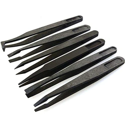 FEITA Precision Plastic Tweezers Kit Anti Static Set Pickup Craft Electronics DIY Repair Tool Black 6Pcs