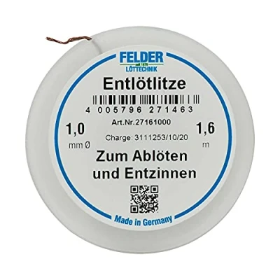 Felder 27161000 Desoldering Wire, Fluxe Soaked, 1.00 mm, 1.60 m Spool
