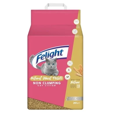 Felight Natural Wheat Pellets Cat Litter (20L Bag) Non Clumping, 100% Biodegradable, Antibacterial Silverfresh Technology, Prevents Odours for up to 10 Days, Made in the UK