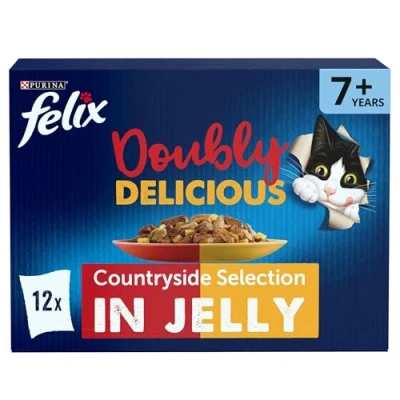 FELIX Doubly Delicious 7+ Countryside Selection in Jelly Wet Cat Food 12x85g (Pack of 4)