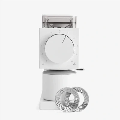 Fellow Gen 2 Ode Brew Grinder Burr Coffee Electric Bean with 31 Settings for Drip, French Press & Cold Small Footprint Matte White