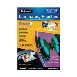 Fellowes A4 Laminating Pouches SuperQuick, Gloss Finish, 100 Sheets, 160 Micron (2 x 80 Micron) High Quality Ideal for Notices, Photos, Certificates, Menus and External Signage