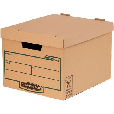 Bankers Box™ by Fellowes Earth Series Standard Storage Box are sturdy recycled corrugated boxes that are easy to set up manually. With a double layer of board to end panels and base they are ideal for transporting files and can accommodate 4 x 80mm A4 Earth Series transfer files; great for when you need a long term storage solution. When you choose Earth Series you can be rest assured you are picking filing and storage products that don't cost the earth; the Bankers Box™ Earth Series storage boxes are made from FSC™ certified board and are 100% recyclable. All inks used are water based and adhesives used are solvent free.