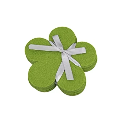 Felt Coasters for Glasses Set of 6 Flower Green 11.5 cm