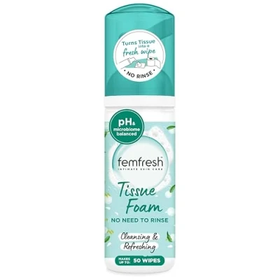 NO-RINSE FRESHNESS: Femfresh Daily Tissue Foam transforms toilet paper into gentle, flushable intimate wipes for on-the-go cleansing. PH & MICROBIOME BALANCED: Formulated with lactic acid and prebiotics to maintain the natural pH and microbiome of delicate intimate skin. VEGAN & GENTLE: Dermatologically tested and made with 97% natural origin ingredients, safe for sensitive skin and daily use. CONVENIENT ON-THE-GO: Lightweight 50 ml bottle fits in bags for travel, office, gym, or festivals; approx. 50 uses per bottle. COMPLETE YOUR ROUTINE: Explore the Femfresh range of feminine washes and intimate wipes for everyday comfort, freshness, and confidence.