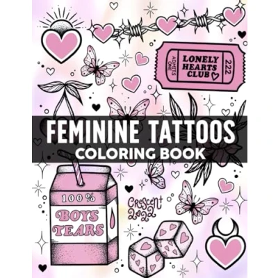 Feminine Tattoos Coloring Book: Aesthetic Tattoo Pages for Adults with Beautiful Modern Art Designs Stress Relief, Relaxation, and Creativity